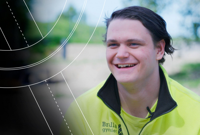 Calle går andra året på bygg- och anläggningsprogrammet. Han har en tanke om att vilja studera vidare på yrkeshögskolan men har valt inriktningen anläggningsförare. På fritiden ligger tiden med sina kompisar högt på listan.